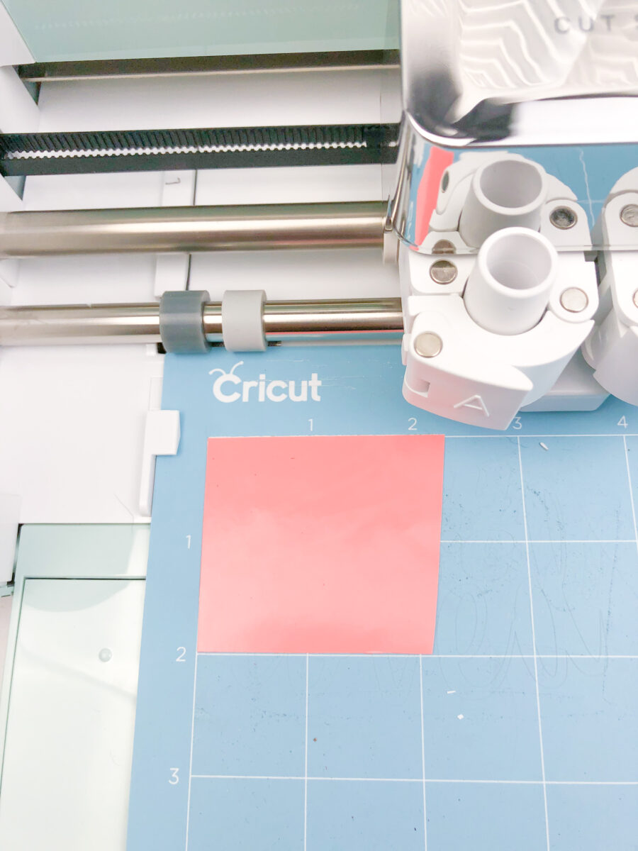 Once you are happy with how many to cut and where they are on the vinyl, turn on your machine and get it ready to cut. If you are using a mat, put the vinyl on the mat, color side facing up.