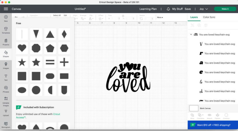 - SVG Design – any design you like. Join our newsletter to get the “You Are Loved” SVG free!