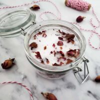 Transform an ordinary bath into a blissful experience with DIY Vanilla Rose Bath Salt Soak. There’s nothing quite as indulgent and rejuvenating as a luxurious bath. Imagine sinking into warm water infused with the delicate scent of roses and the soothing essence of vanilla. Combining Epsom salts, coarse sea salt, baking soda, dried rose petals, rose essential oil, and vanilla essential oil, this homemade bath salt soak offers many benefits for your body, mind, and soul.
