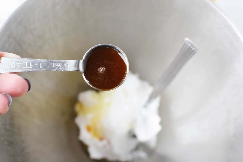 Finally, add the vanilla extract to the bowl with the rest of the ingredients.