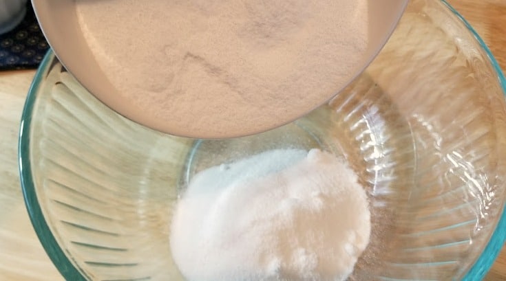 First, Add washing soda to a medium-size bowl. Washing soda is a special type of laundry soda. It is NOT the same as baking soda. You’ll find it online or in the laundry aisle.