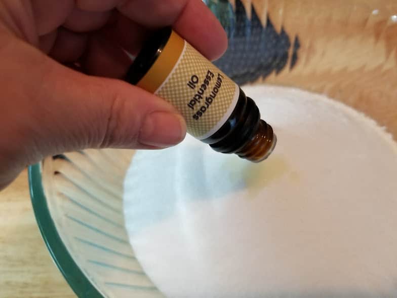 Then, add essential oils. The citrus provides a nice scent and has the added benefit of helping to clean the dishes. But feel free to change this up for a new fresh scent anytime you make a new batch of the dishwasher tablets.