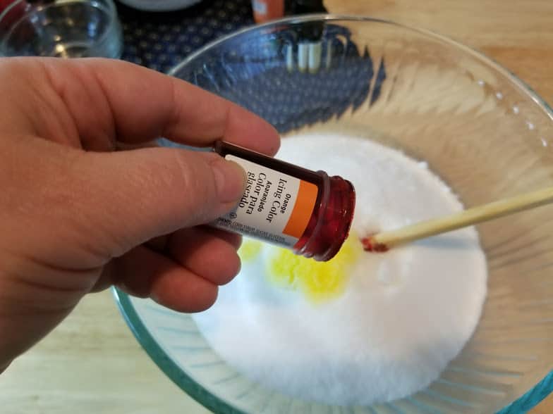 Add food coloring if you want to color the tablets. This is totally optional and honestly just makes them a little prettier. It’s also nice if you are giving these as gifts.