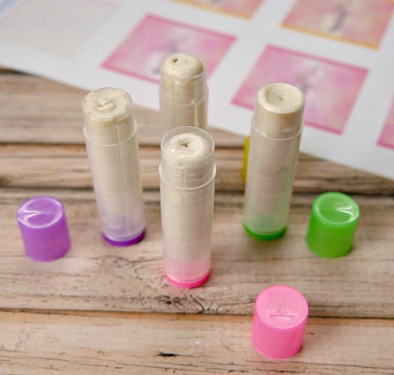You will also need lip balm containers. I had plain white ones on hand, but these colorful tubes just screamed fairy dust!