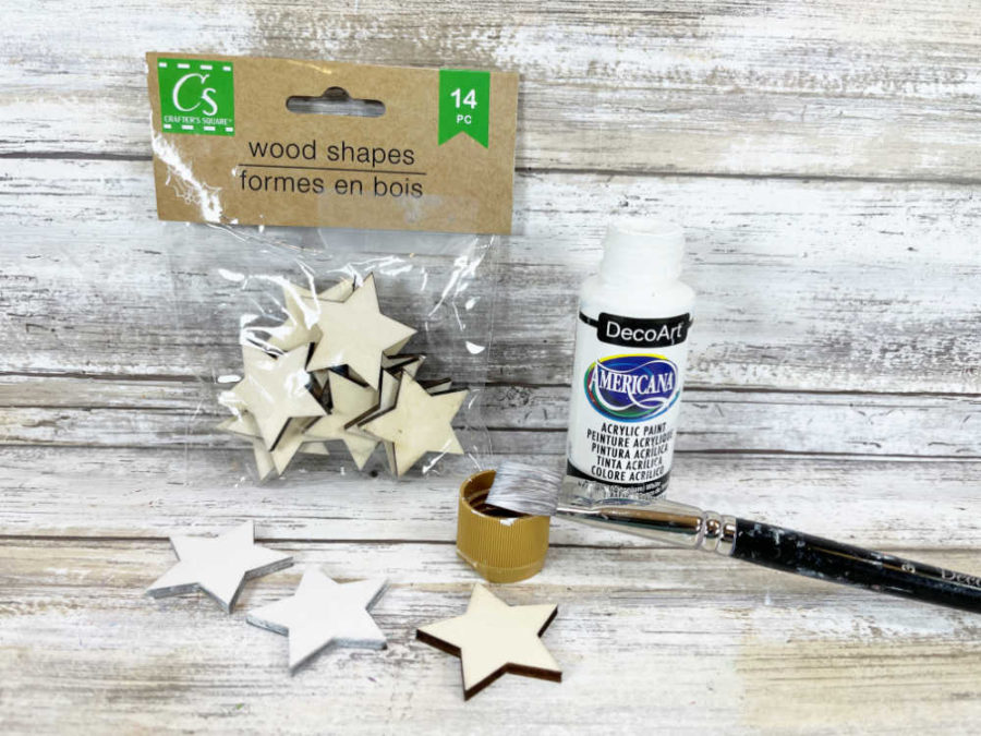 - Paint 3 wooden stars white.