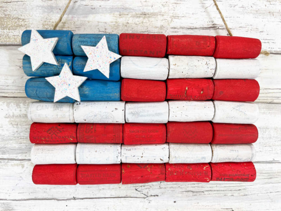 Put those recycled wine corks to good use in your home décor, creating a patriotic-inspired American Flag. This project comes together in just about 30 minutes with limited craft supplies.