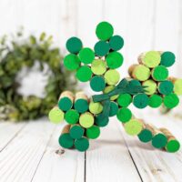 Make a shamrock wine cork craft for St. Patrick’s Day using new or used wine corks, glue, and paint. This wine cork craft project comes together in about 30 minutes with basic craft supplies. Use a free shamrock template to create the shamrock clover shape. Glue the wine corks together and paint them a variety of green hues. Add a ribbon to the middle for the final touch.