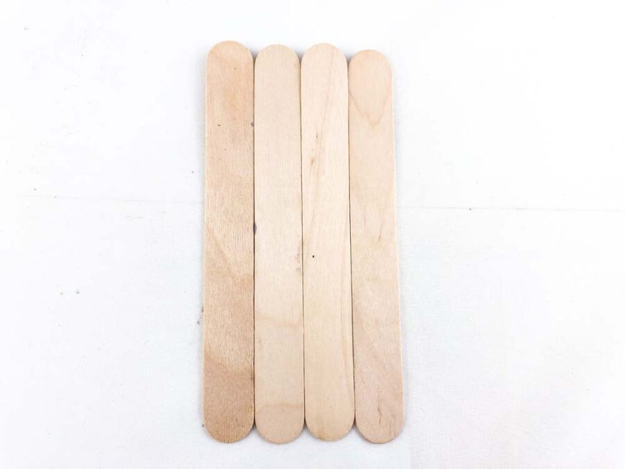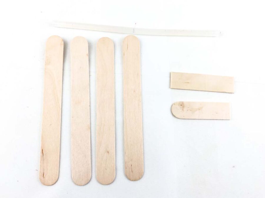 - Glue one half of the cut popsicle stick to the top half of the four sticks and the other half on the bottom.