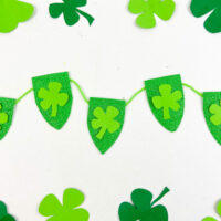 It’s easy to let St. Patrick’s Day pass by without a celebration. But the middle of March can be dreary as winter melts into spring. Take advantage of this cheery holiday and decorate your house with this festive green shamrock garland. The garland is easily made with glitter paper, construction paper, yarn, and glue. It’s a great craft project for kids.