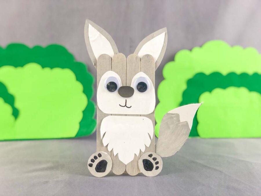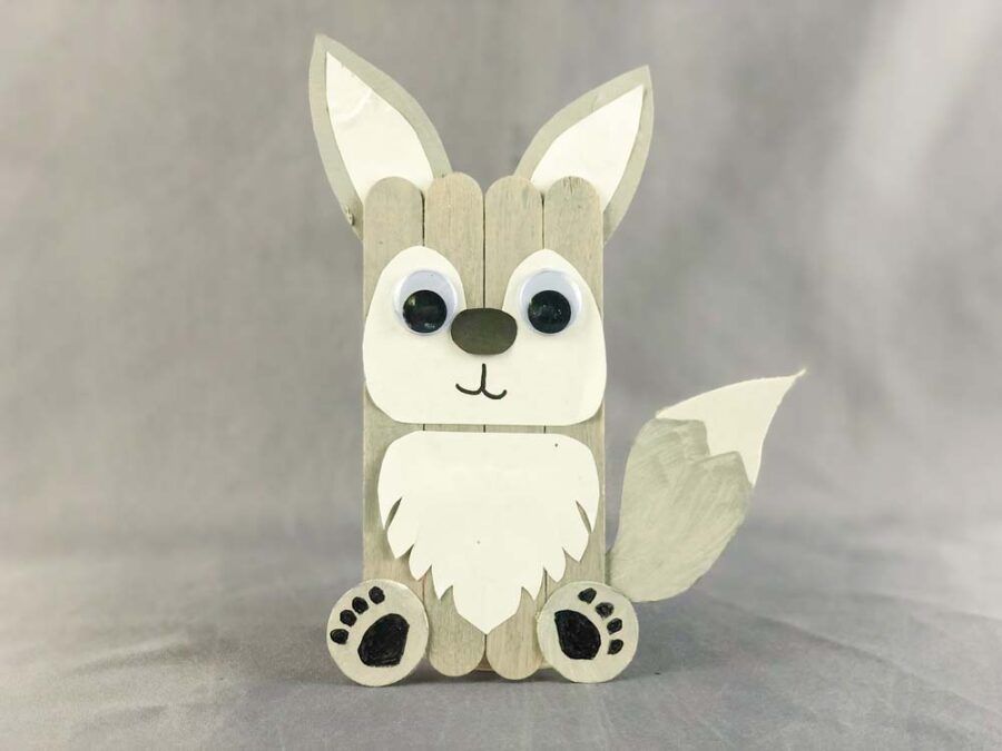 Use popsicle craft sticks to make an adorable popsicle stick fox craft. Paint the popsicle sticks with craft paint and add details like eyes, nose, and tail.