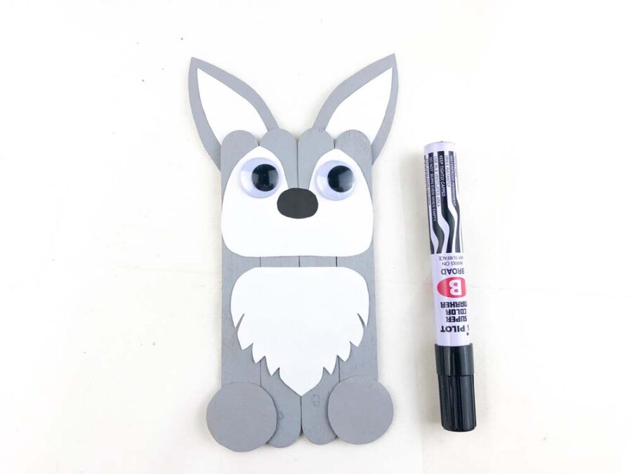- Use a pen or marker to draw on the fox’s mouth and toes on his paws.
