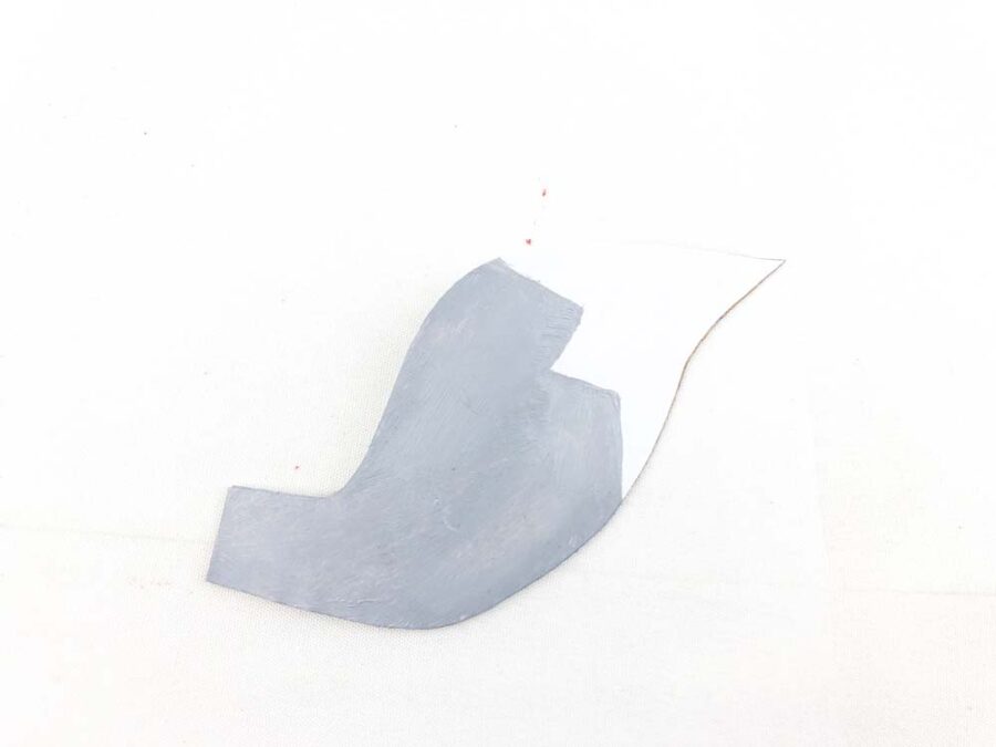- Make the tail by tracing the template onto a piece of cardboard. Paint the tail gray. Once dry, paint the tip white.