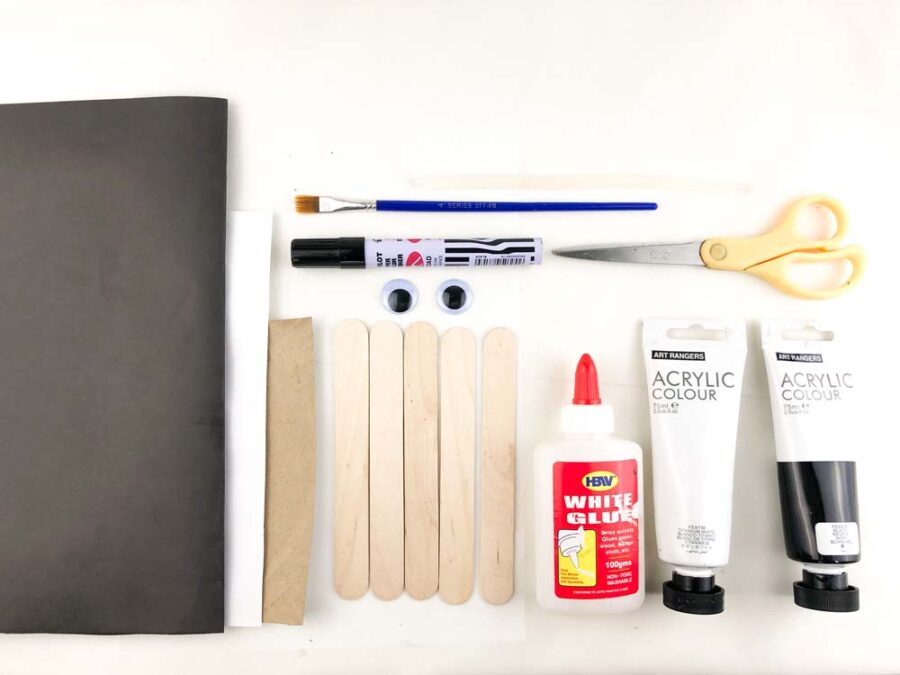 Paint the popsicle sticks gray. Make sure to cover the entire popsicle stick. Let it dry.