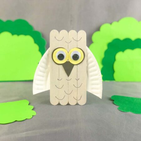 This cute little popsicle stick fox is one of four winter animal popsicle stick crafts we’ve created. The fox also has an owl, polar bear, and walrus friends. You can create just one or make the entire set.