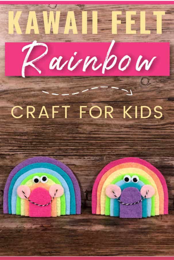 Felt Kawaii rainbow crafts for kids are a fun family activity you can create in just about 30 minutes. Add a pin back, magnets, or a twine hanger to these super cute rainbows.