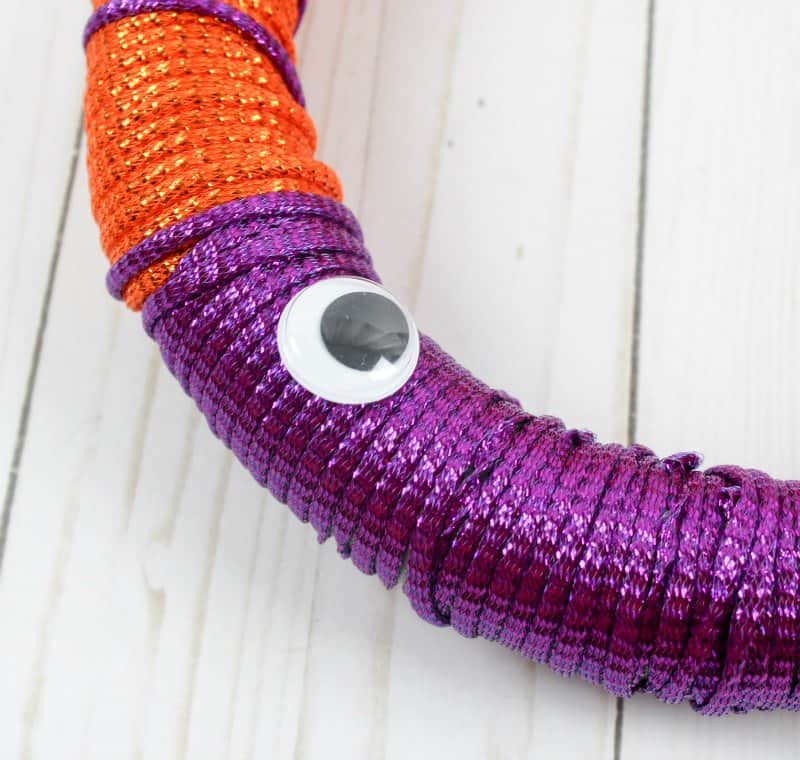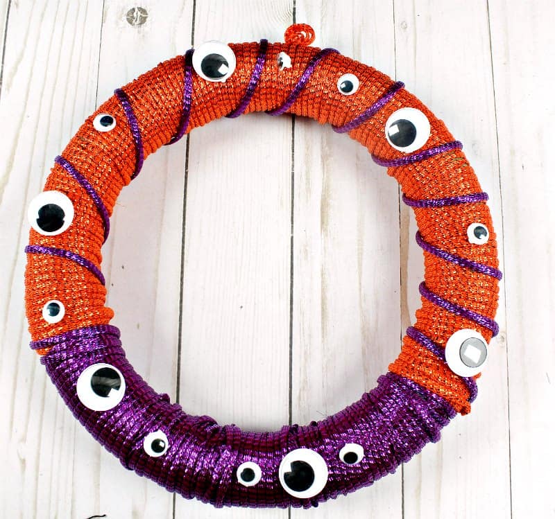 Continue adding the googly eyes to the wreath until you love how it looks. You can use a lot of them or even just use two gigantic googly eyes on the very top or bottom of the wreath. Have fun with it!