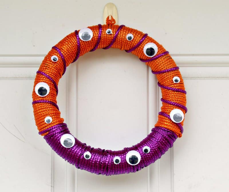 Add a fun googly eyes wreath to your front door for Halloween! Quick and easy to make, this googly eye craft is perfect for kids!