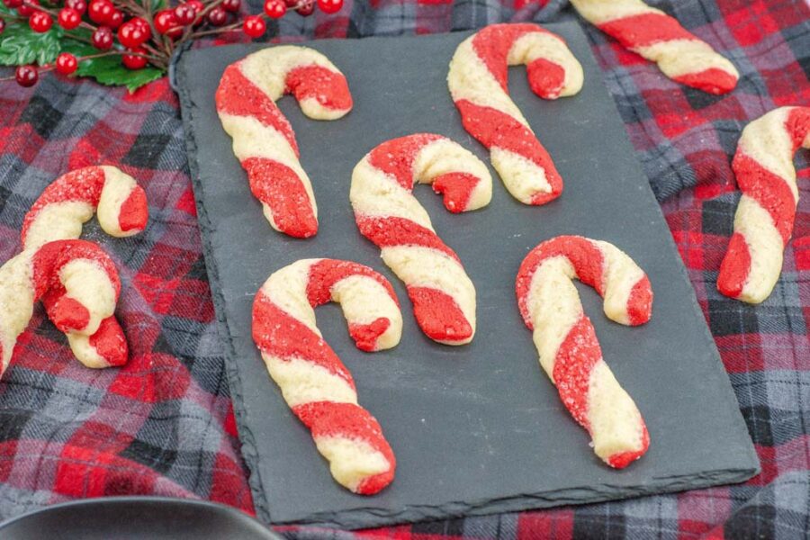 A touch of red food coloring and white crystal sprinkles lend the finishing touches, reminiscent of the iconic candy cane. Dive into this recipe to discover how these ingredients combine to create the ultimate Christmas cookie experience.