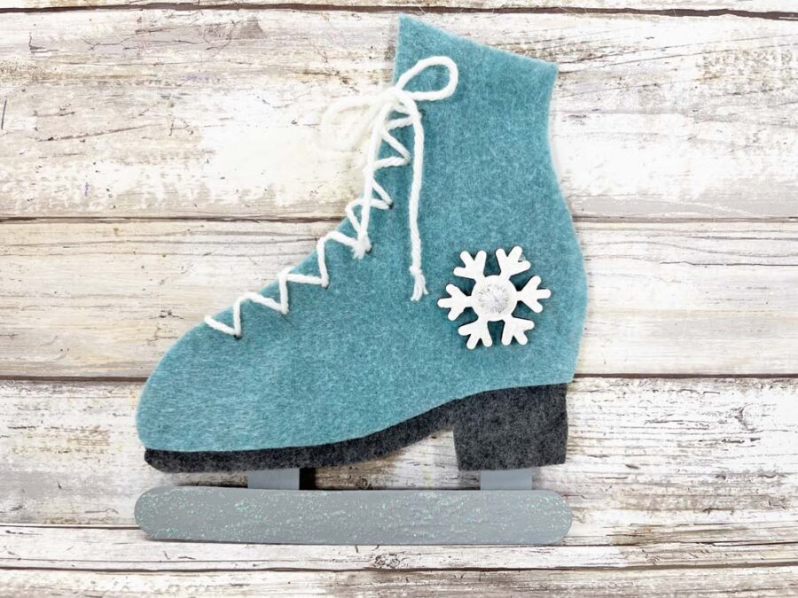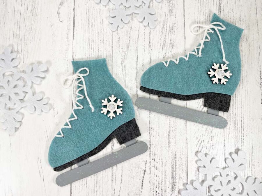 Ice skates are a vintage Christmas and winter decoration. Unlike a real pair of ice skates, this felt version is safe to use anywhere.