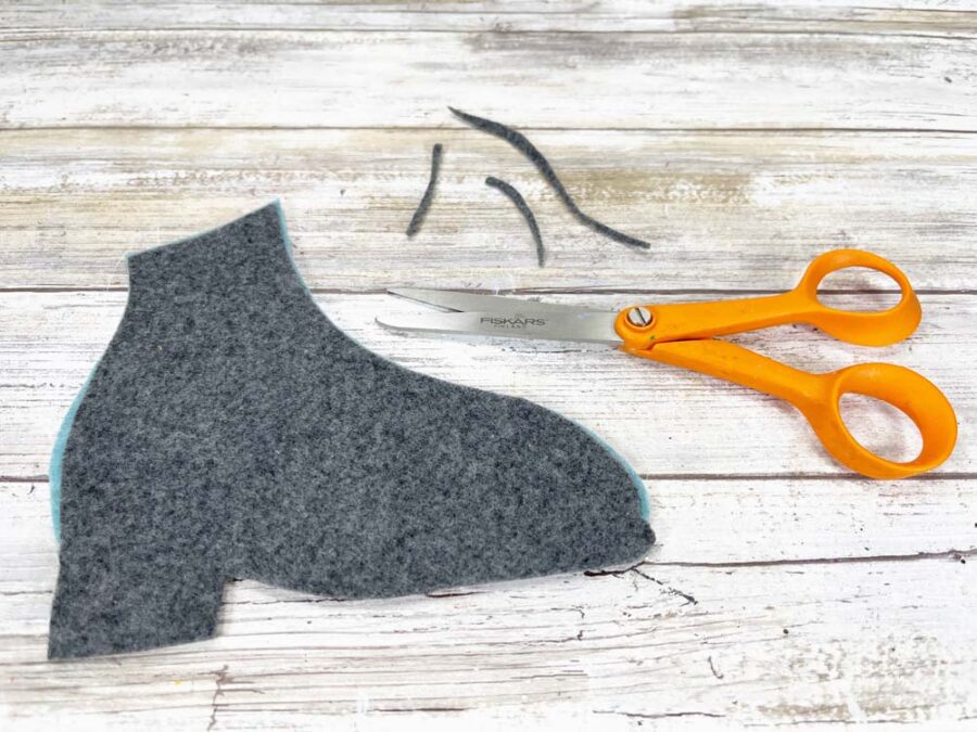 - Flip the skates over and trim any excess grey craft felt with scissors.