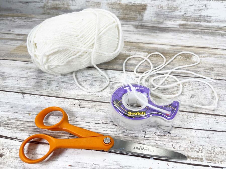 - Measure and cut a 48” length of white yarn for each skate. Wrap the end in clear tape to assist with lacing.