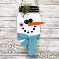 Make a snowman from a mason jar sign to hang in your home all winter. Paint the jar using craft paint. Then make the snowman’s face out of buttons and a craft stick. Finish the snowman sign with a scarf made out of felt. Decorate the jar lid with some twine and a festive pine branch. Hang up and enjoy.