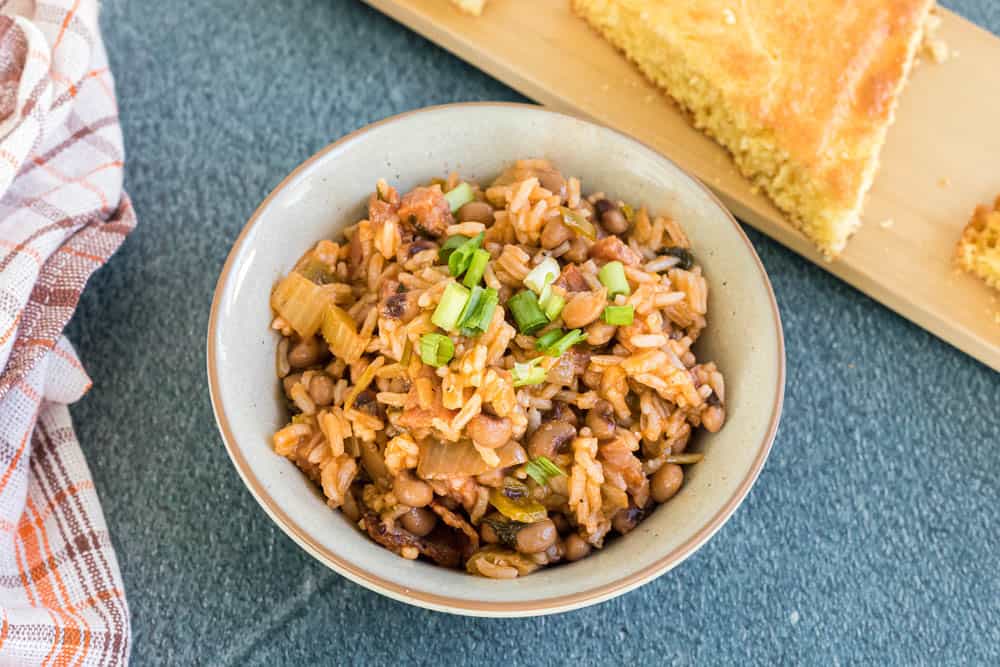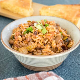 This easy slow cooker black-eyed peas Hoppin’ John is quick and easy to make thanks to the canned beans. Set it out for your family with a little buffet of garnishes for the top and some Easy Cheesy Bacon Cornbread on the side. You are sure to have a new year full of good luck!