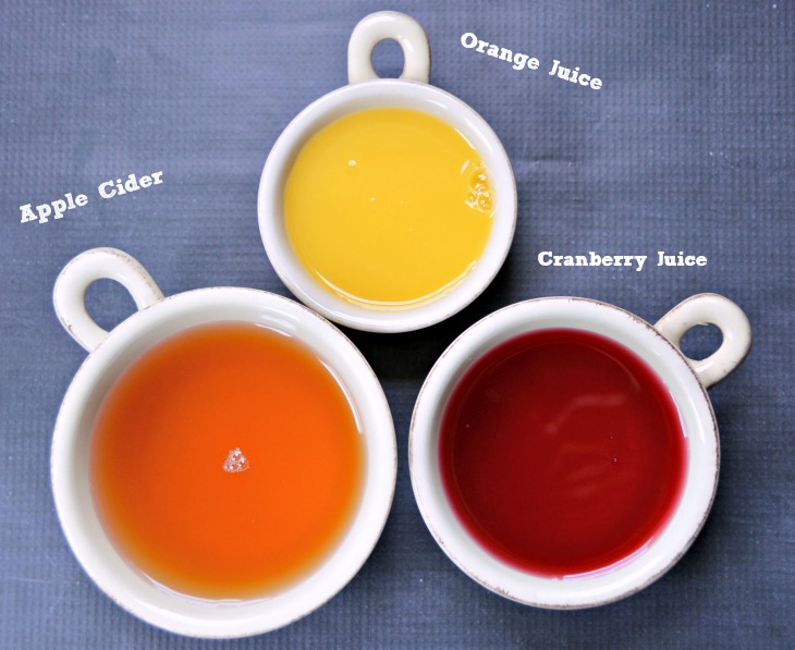 Fun, huh?! For a wassail that both adults and kids can enjoy this recipe uses juices instead of wine as the base. It uses three different kinds of juice apple cider (see?), cranberry juice, and orange juice.