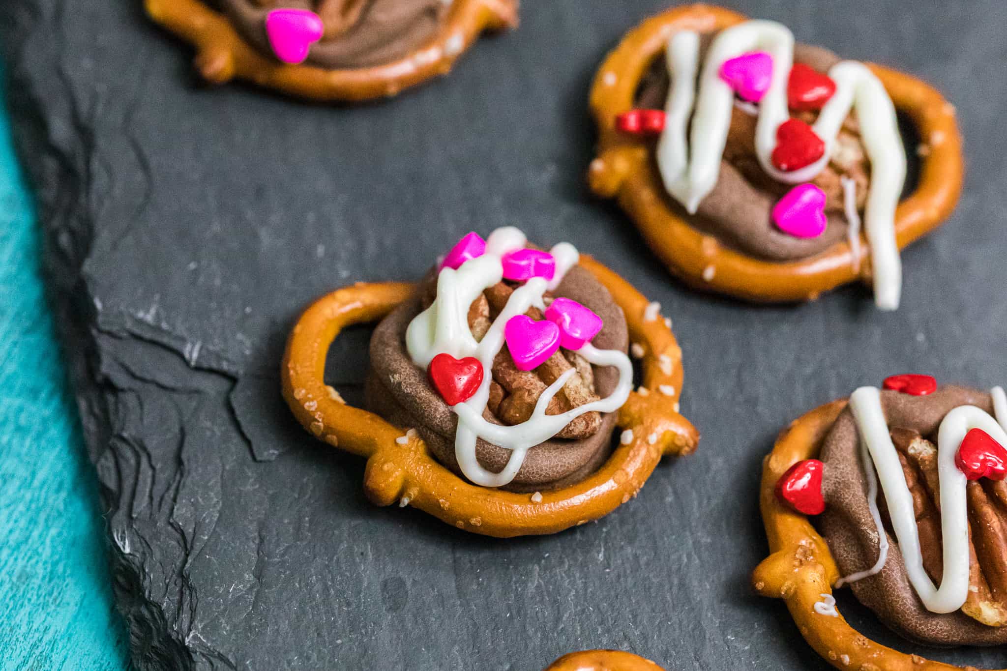 After a busy season of Christmas baking in December, these festive Valentine’s Day pretzel turtle candies are super fun and easy to make. They take about 15 minutes total to throw together. And about 2 seconds to eat! They are salty, sweet, and gooey.