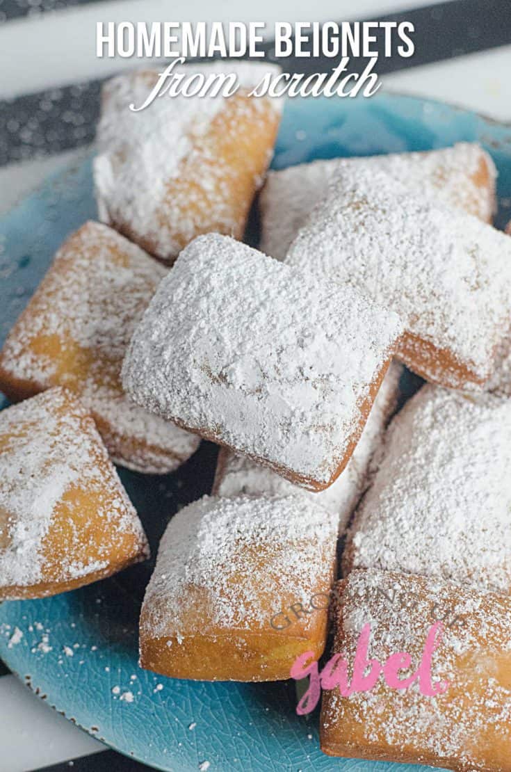 Make homemade beignets from scratch with a yeast dough that is fried and then covered in powdered sugar.