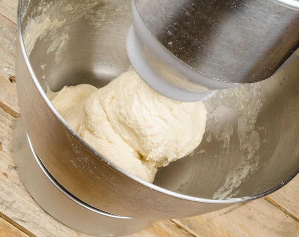 - Mix the yeast, water, and sugar in a mixer bowl fitted with a dough hook. Let stand until foamy, about 5 minutes.
