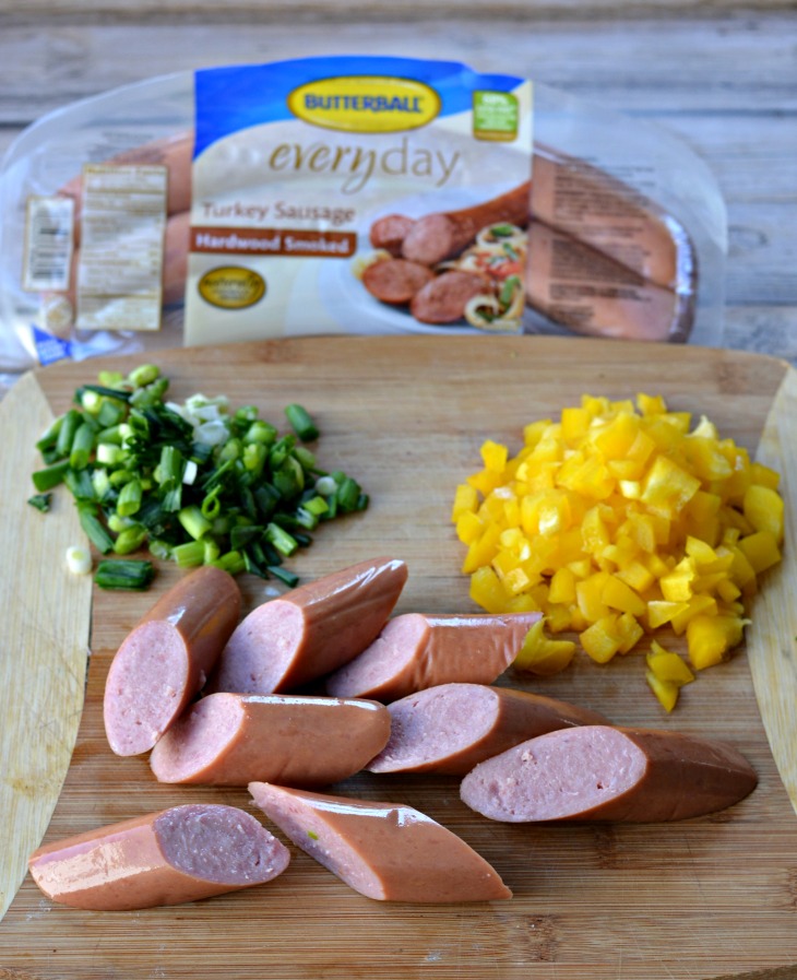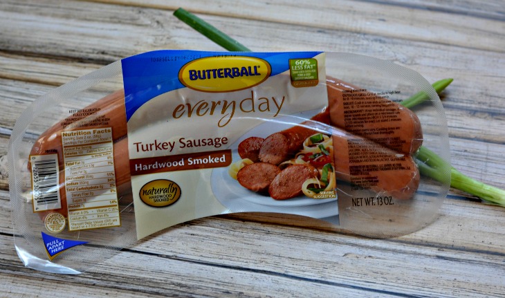 For this batch I used Butterball Turkey Dinner Sausage. Butterball turkey sausage is 100% turkey and has 60% less fat than pork or beef sausage. I’ve been switching over to more turkey products and I was curious if anyone would notice the difference, but not one person did. I was able to make the dish a little more lean without sacrificing taste. You can print off some Butterball coupons, too, to help make the dish even more economical.