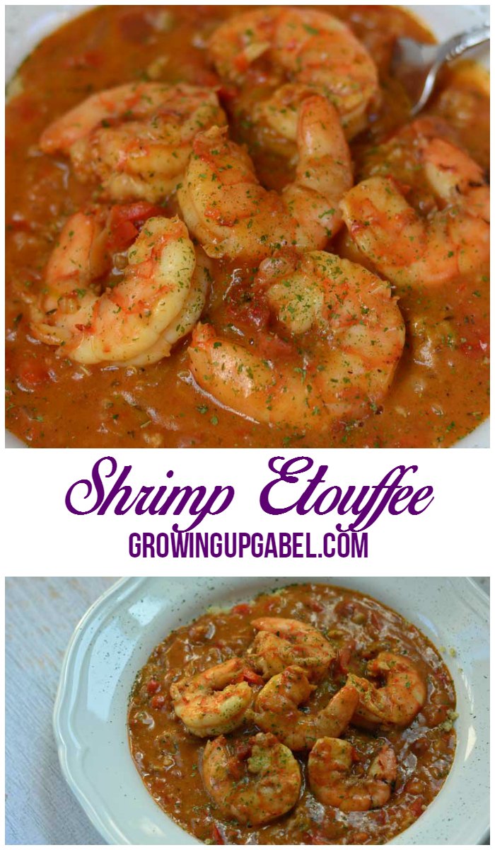 Cajun Shrimp Etouffee Recipe is a traditional New Orleans recipe full of flavor. Made with vegetables, stock and a roux, shrimp are then added to the etouffee gravy and served over rice.