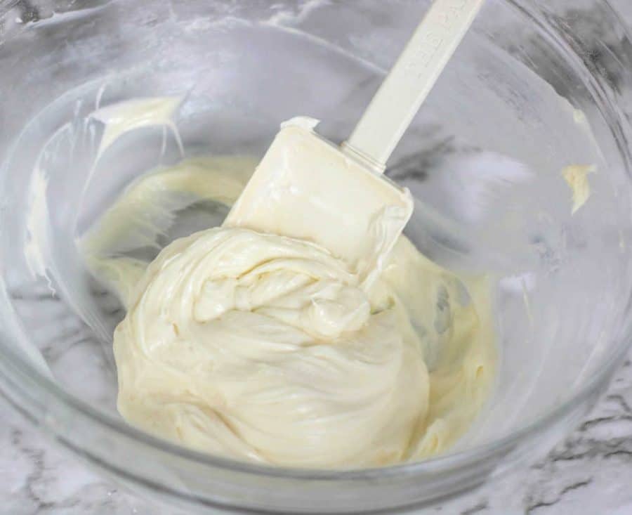 - In a stand mixer add cream cheese and 1 tablespoon water. Place on low speed until cream cheese is smooth.