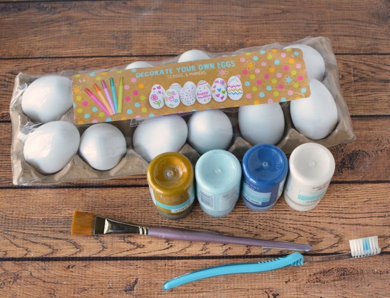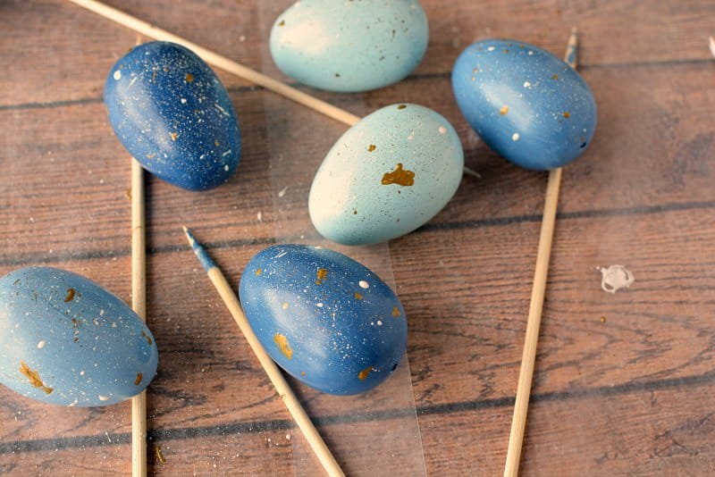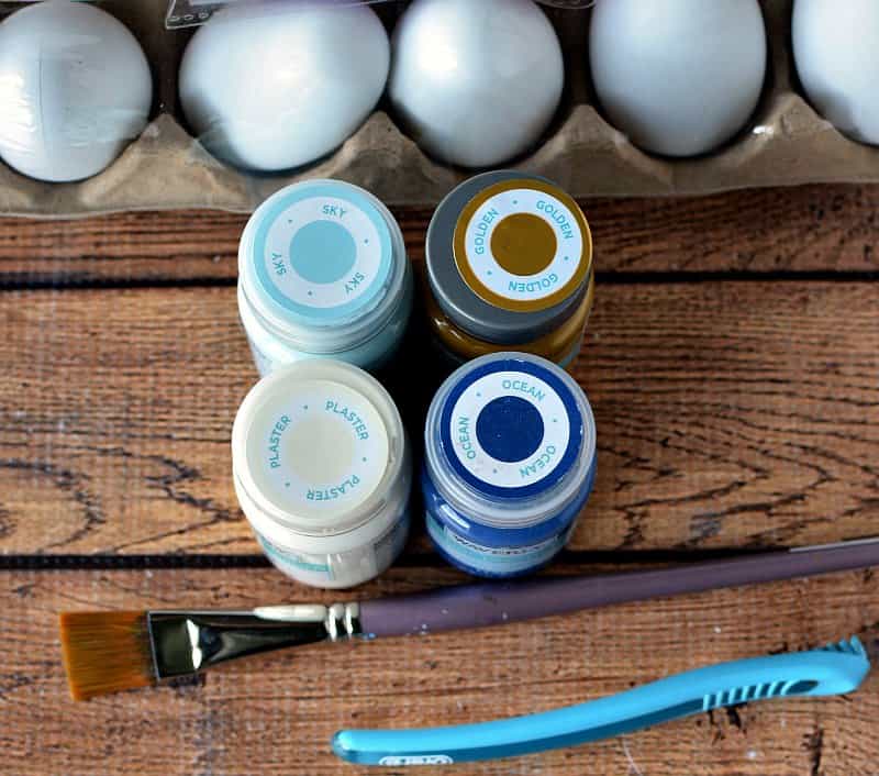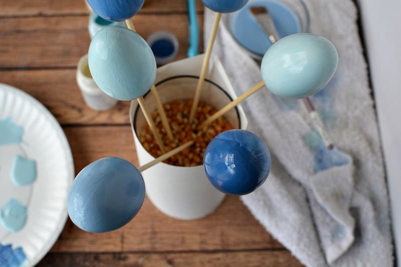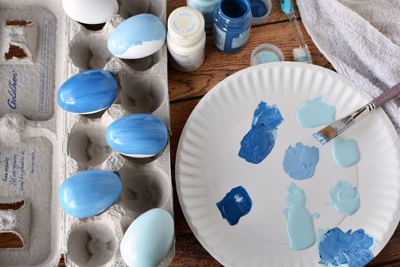 Paint each egg with two coats of paint, making sure to dry completely between coats. You can use one color of blue or layer the colors for a little dimension and added interest.