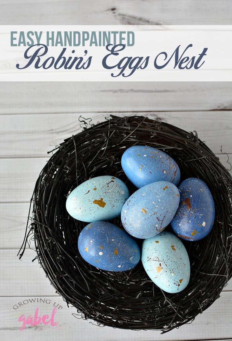 Make a decorative bird’s nest with DIY hand-painted Robin eggs and a bird’s nest for a home decoration perfect for spring.