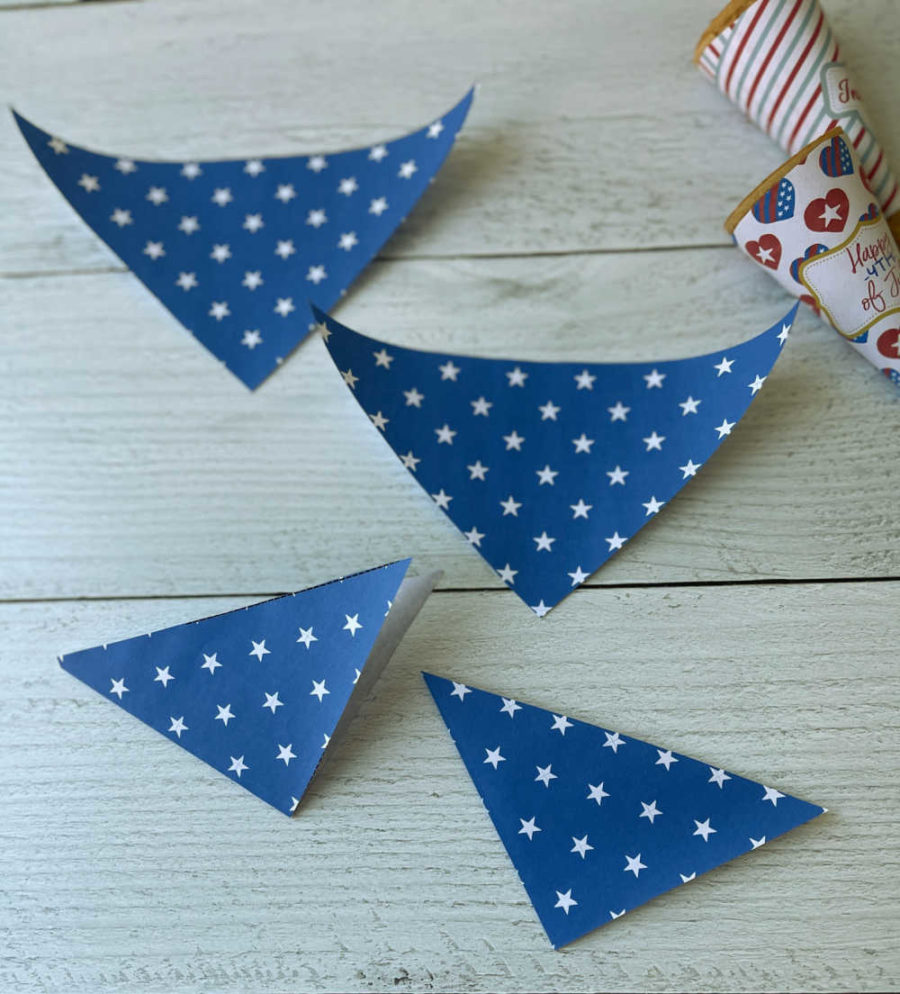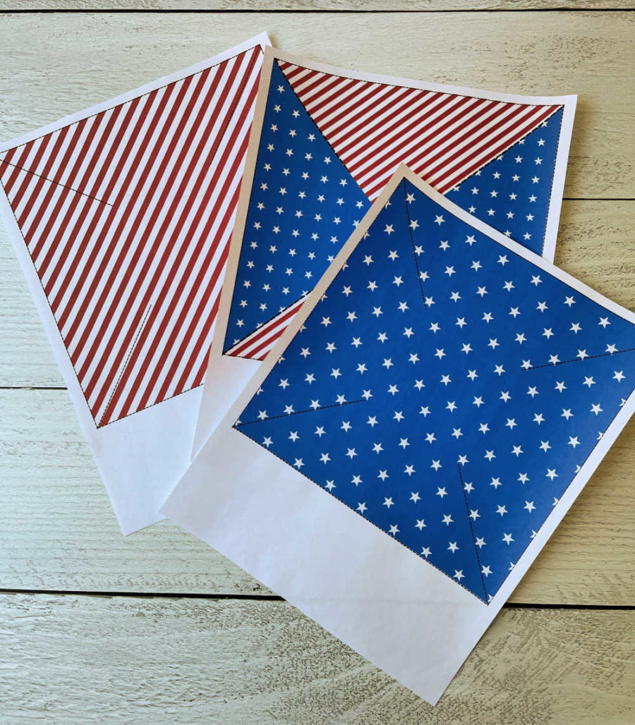 To make the bunting, you will cut out the squares of whatever pinwheel designs you want to use.