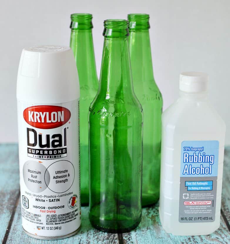 - In a well-ventilated space, spray your bottles with white spray paint.