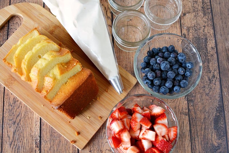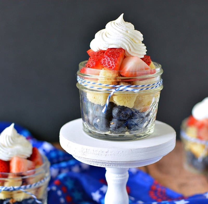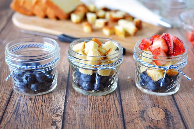 Summertime means all the things red, white, and blue food like Red, White, and Blue Fudge and Red, White, and Blue Homemade Ice Cream . As we head into a post-pandemic era, individually prepared foods are the stars of parties. Let’s make some dessert in jars using fruit and pound cake.
