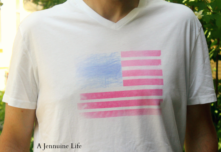 Make an American flag shirt with a simple white t-shirt, fabric crayons and an iron.