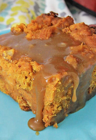Slow Cooker Pumpkin Bread Pudding with Caramel Sauce