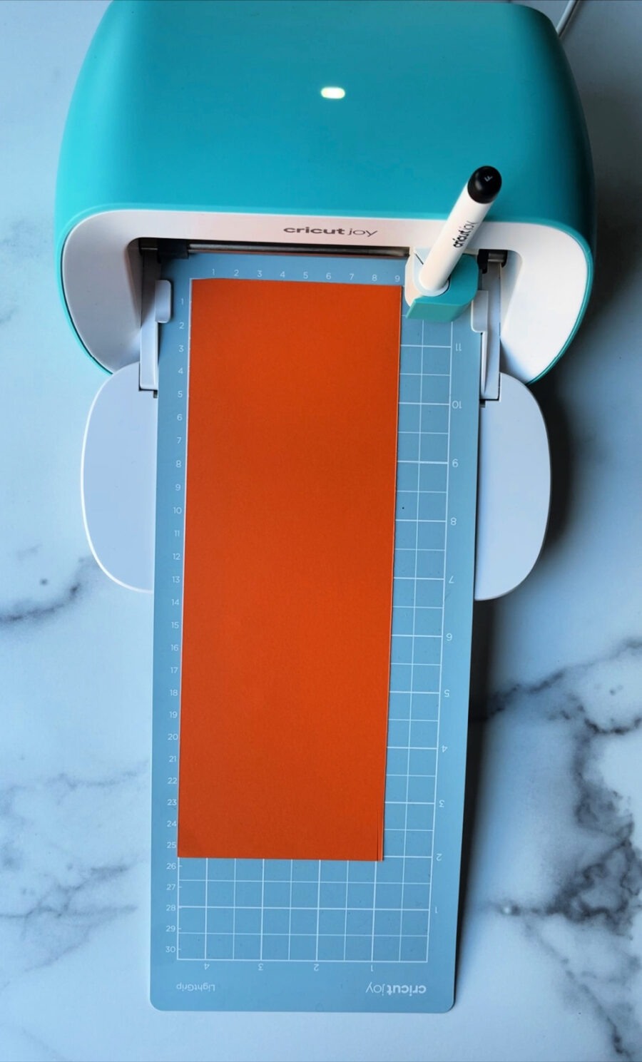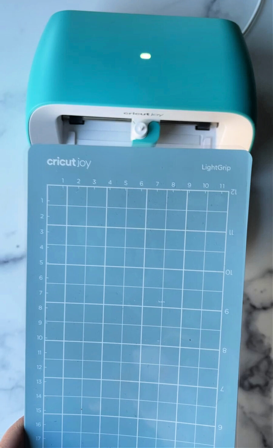 Make sure to use a blue Cricut Light Grip cutting mat for the card stock. You may need to trim the paper down to fit the mat using the Cricut Joy.