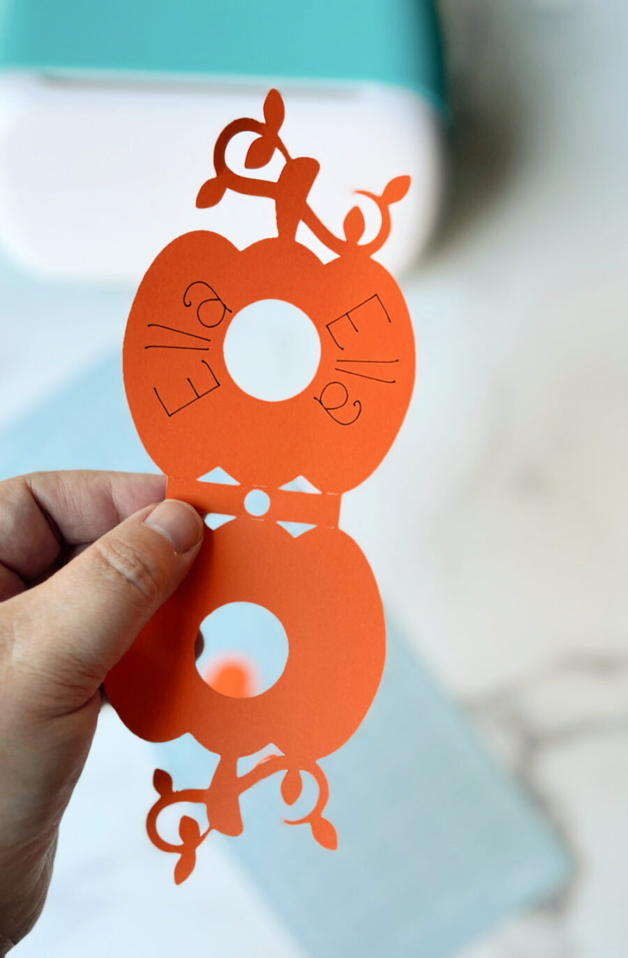 You can handwrite the names on the pumpkins, or you can do it on the Cricut.