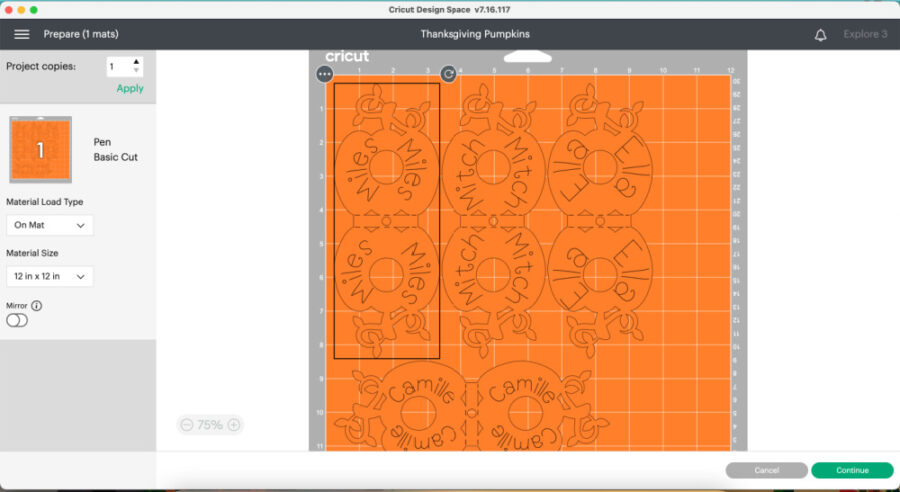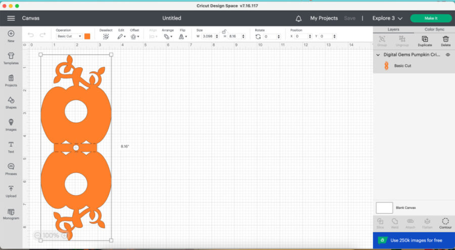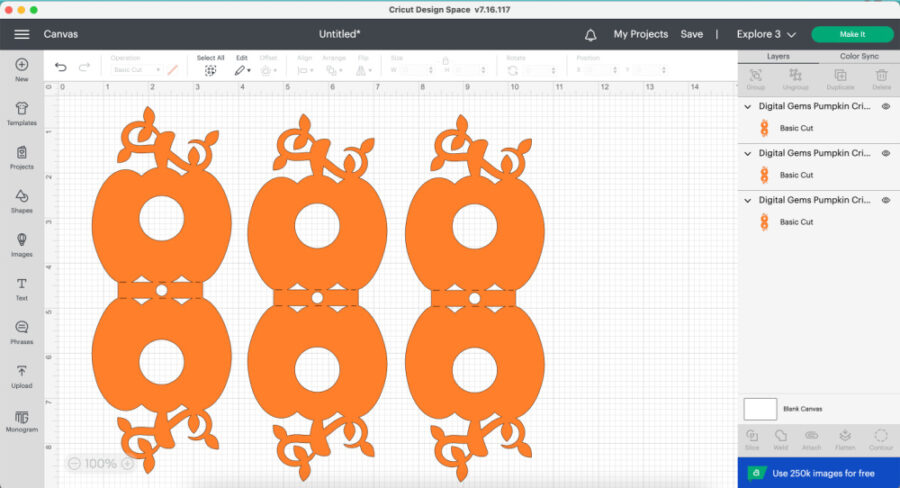 If you are using an Explore or Maker, you can copy and paste more pumpkins if you want to make several of them at once. We just made 1 using the Cricut Joy. You can fit 4 pumpkins on 1cutting mat for the Maker or Explore.