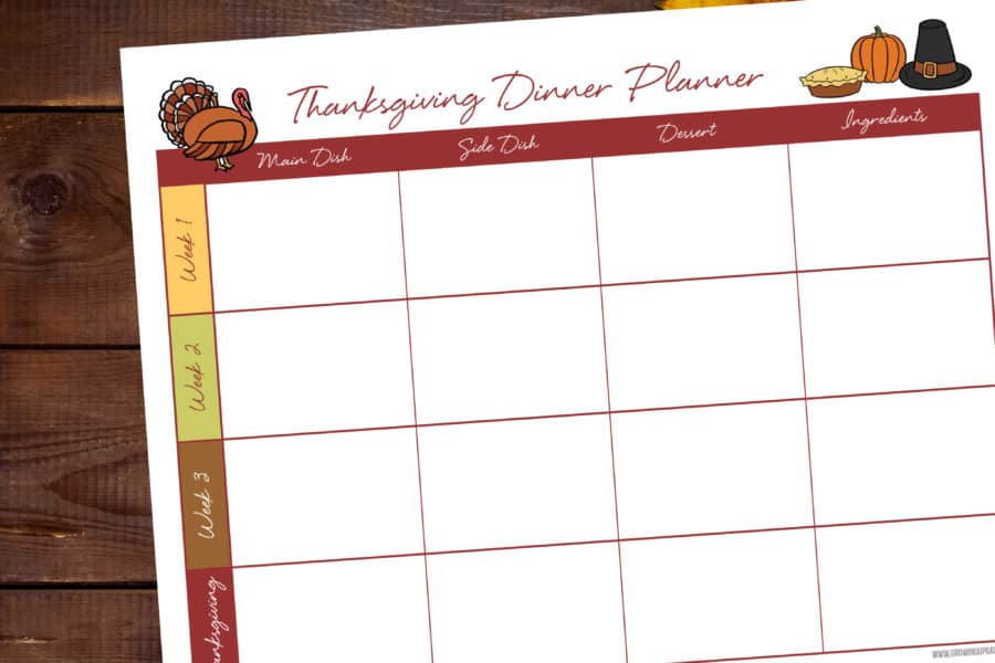 This Thanksgiving planner will help you take a look at the weeks leading up to Thanksgiving and plan what to cook when. Even just prepping one recipe a week will make Thanksgiving easier to manage.