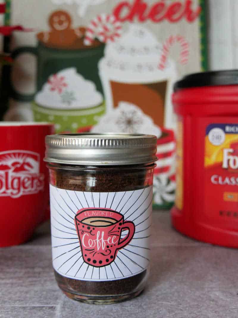 Brewing coffee at home with your family is a great way to bring people together and start your morning and holiday season right. So this year, we made some fun homemade flavored coffee gifts. Your recipients can use the coffee to make their DIY coffee drinks right at home to share. And that’s better than a coffeehouse gift card any day.