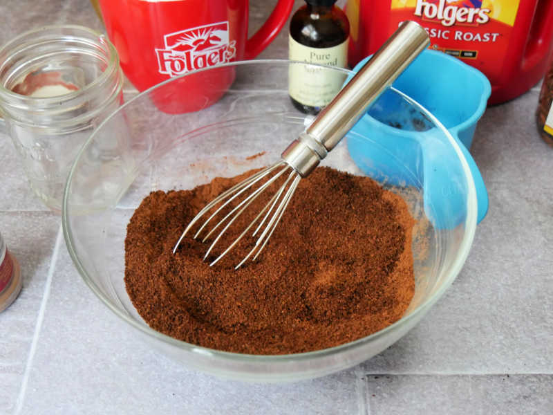 - In a small mixing bowl, whisk together the Folgers coffee and your choice of flavorings - either cocoa powder; a ground spice; or flavored extracts. You can also mix and match these.