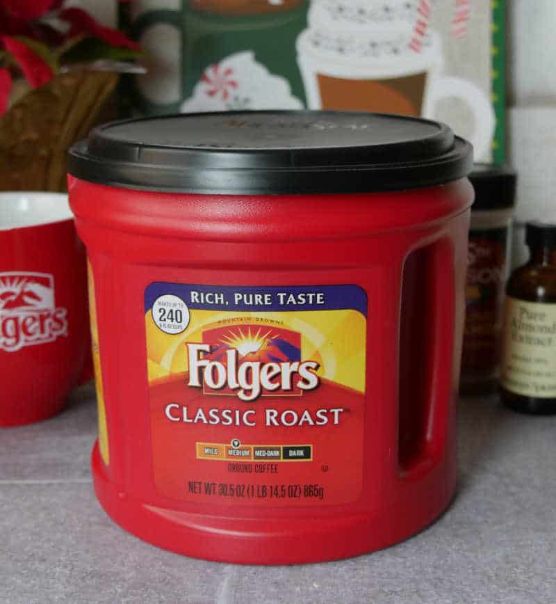 Folgers® is the best coffee for your holiday entertaining needs. It is available in 12 distinct roasts, so you’re sure to find something for everyone on your list. We used Folgers® Classic Roast because it’s a delicious medium-roast coffee that will showcase the flavors well.