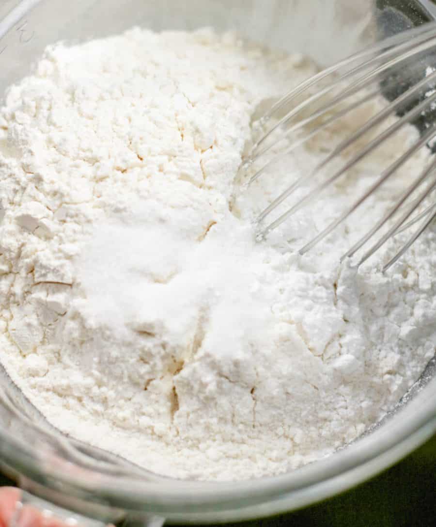 - In a medium size bowl, whisk together flour, baking powder, and salt. Set aside.