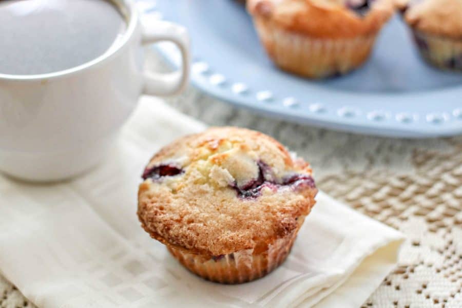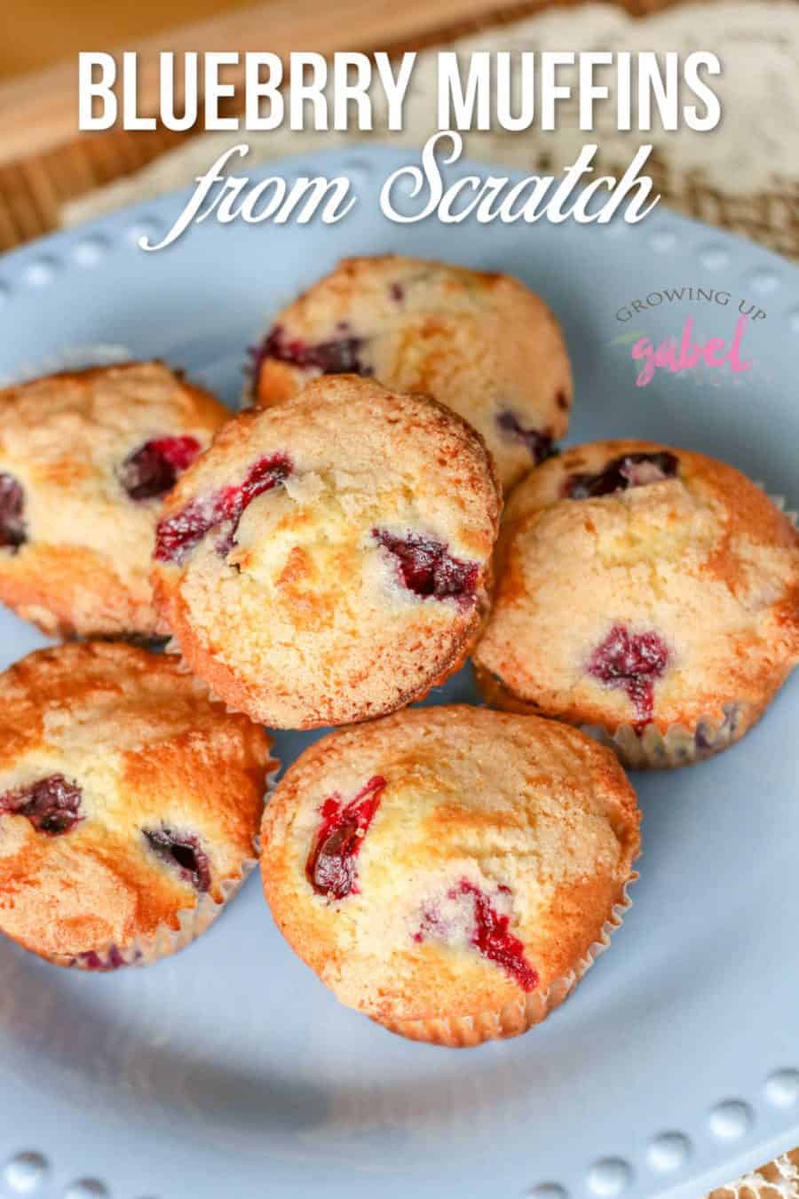 Making delicious and moist blueberry muffins from scratch is pretty easy. In fact, muffins are one of the first recipes I use when teaching kids how to bake. There is a little bit of a trick so that all of your blueberries don’t end up at the bottom of the muffins. But other than that, you’ll love these.